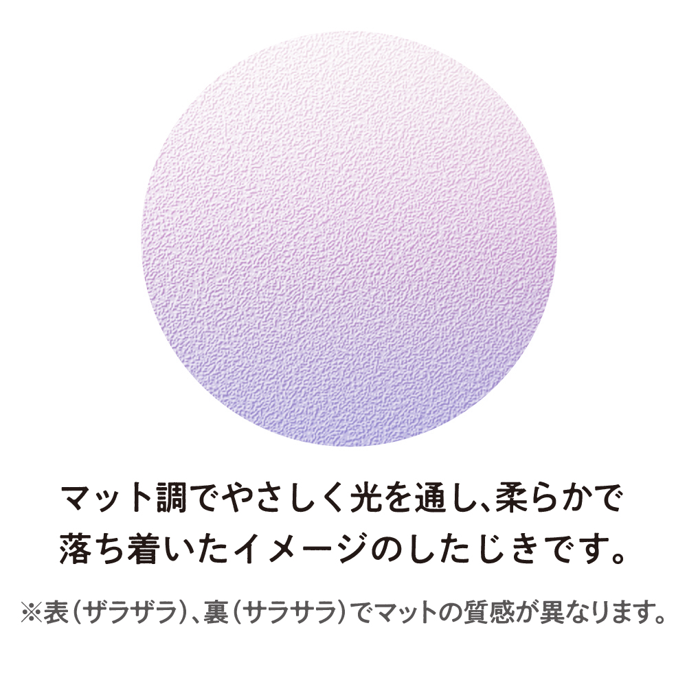 シンプルながらもキレイな色合いを活かし、マット調の生地はやさしく光を通すため、大人の普段使いにもピッタリな落ち着いたイメージのしたじきになっています。