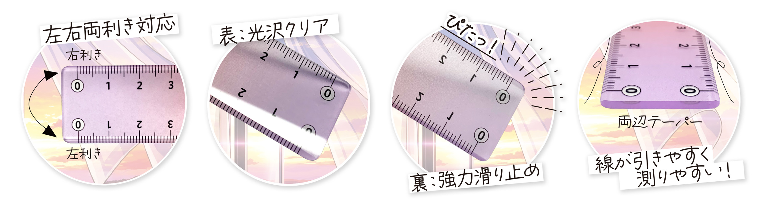 左右利き手対応の目盛り・超強力滑り止め・線が引きやすい両辺テーパー