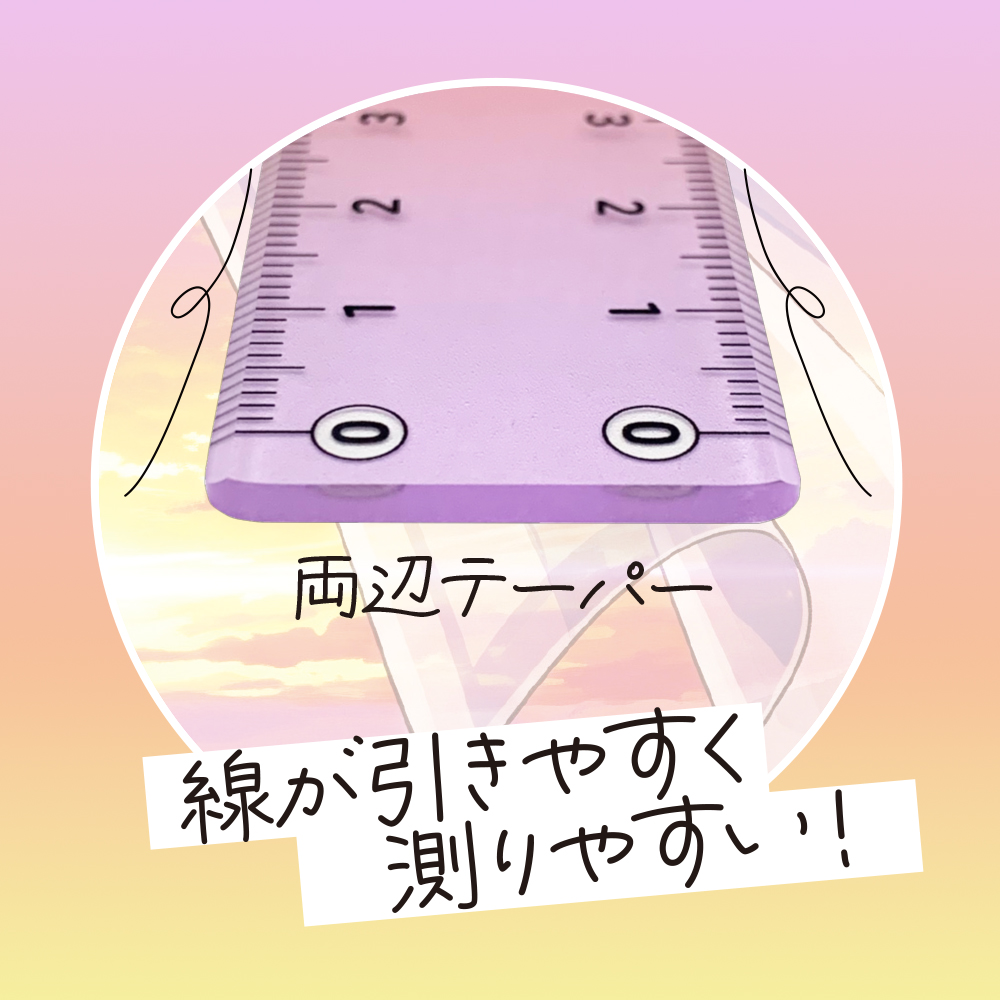 また、両辺が斜めにテーパーカットされていて線が引きやすく、目盛りも読みやすい!