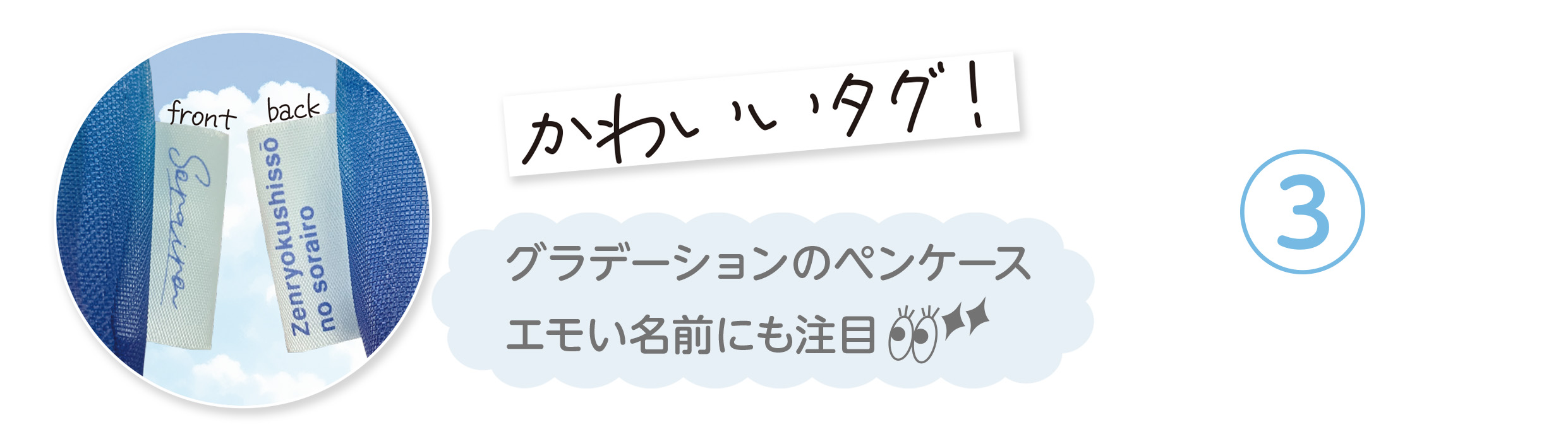 表にはそら色ロゴ、裏は色の名前が入ったかわいいタグがポイント!