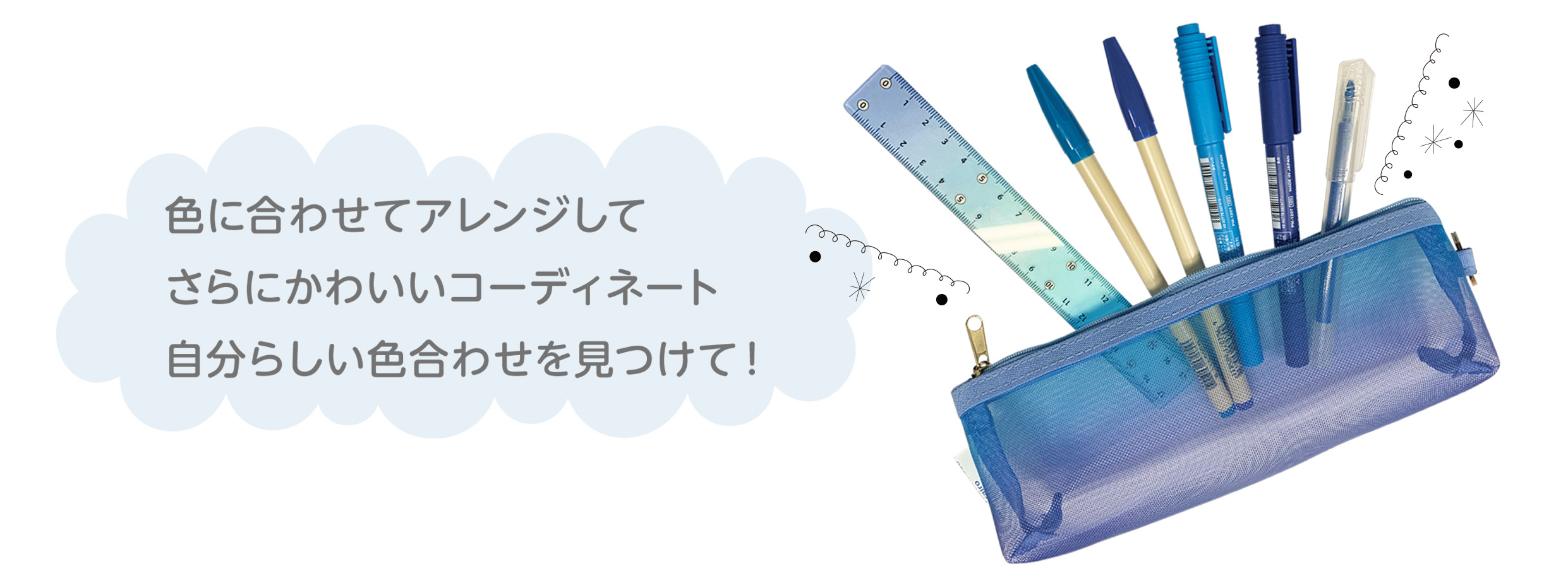 メッシュ素材で軽くcarry 収納stationeryそら色ペンケース