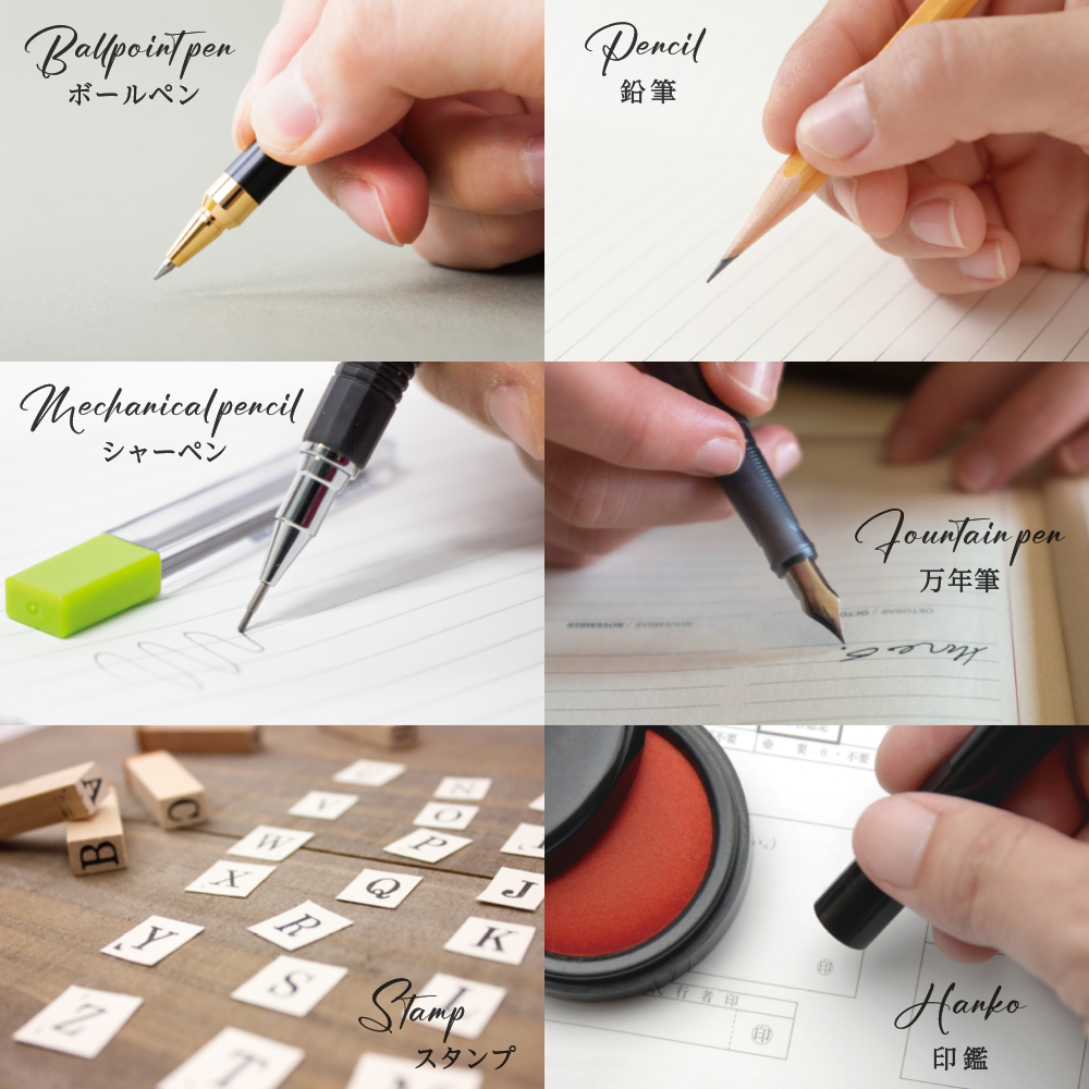 ●万年筆、ボールペン、シャーペン、筆ペン、鉛筆、ガラスペン、マーカー等どんな筆記具にも効果を発揮します。